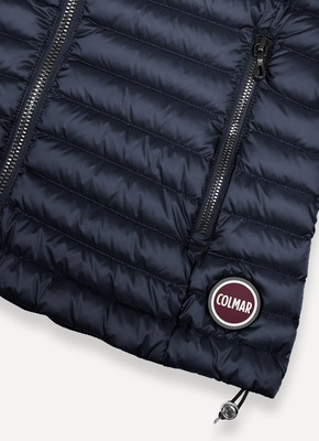 De bodywarmer van Colmar, een Italiaans merk dat sinds 1923 synoniem staat voor kwaliteit en stijl, biedt een perfecte balans tussen functionaliteit en elegantie. Dit model, uitgevoerd in een stijlvolle navy blue kleur, is vervaardigd van 100% gerecycled nylon en biedt dankzij de natuurlijke vulling van eendendons en -veren ongeëvenaarde warmte. Dankzij de waterafstotende behandeling is deze bodywarmer ideaal voor wisselende weersomstandigheden. De comfortabele pasvorm wordt versterkt door elastische armgaten en een verstelbaar trekkoord aan de onderkant, wat zorgt voor een optimale pasvorm. Met praktische zijzakken en een subtiel Colmar Originals-logo straalt deze bodywarmer klasse en verfijning uit.