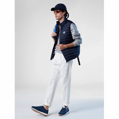 Deze bodywarmer van het merk North Sails is perfect voor buiten wanneer het te warm is voor een winterjas en te koud is voor enkel een trui. De bodywarmer is onderdeel van de Crozet Vest serie en heeft een stijlvolle kleur. Het materiaal is gemaakt van gerecycled micro ripstop polyester en is voorzien van een waterafstotende afwerking. De bodywarmer heeft een regular fit pasvorm en is gevuld met Repreve. De hoge kraag en de zakken met ritssluiting zorgen voor extra functionaliteit. De bodywarmer is waterafstotend en windbestendig en biedt een hoog draagcomfort door de elastische randen. Op de borst is het vilten logo van North Sails te vinden. De bodywarmer is geschikt voor heren en heeft een Italiaanse maatvoering, bestel daarom 1 maatje groter dan gebruikelijk.
