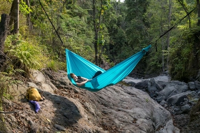 Ontdek de ultieme combinatie van comfort, duurzaamheid en stijl met deze hoogwaardige hangmat van het merk Ticket To The Moon. De opvallende groene kleur en het gebruik van parachute nylon maken dit product niet alleen een visueel aantrekkelijke keuze, maar ook een functionele. De nylon stof zorgt voor stevigheid en elasticiteit. Met een royale afmeting van 320 x 155 cm biedt deze hangmat voldoende ruimte voor één persoon om volledig te ontspannen. Dankzij het lichte gewicht van slechts 0,5 kg is deze hangmat eenvoudig mee te nemen op elk avontuur, of het nu gaat om een trektocht door de wildernis of een ontspannen middag in de tuin. Dankzij deze hangmat ben je snel beschermd tegen vocht, kleine insecten en reptielen, ongeacht de helling ter plaatse. Het maximaal draaggewicht van 200 kg garandeert veiligheid en stevigheid, terwijl de ademende stof zorgt voor een gevoel van lichtheid en comfort. Dankzij de slimme Express Bag verpakking kan de hangmat ook als reiskussen gebruikt worden: praktisch voor in de trein of het vliegtuig. De hangmat is voorzien van een handige S-haak en wordt geleverd met een opbergzak, waardoor het opzetten en opbergen een fluitje van een cent is. Hoewel er geen spreidstok of bevestigingsset wordt meegeleverd, is de installatie in minder dan een minuut te realiseren. De minimale hanglengte van 500 cm maakt het geschikt voor diverse ophangmogelijkheden. Perfect voor zowel digitale nomaden als avonturiers, deze hangmat voldoet aan de hoogste kwaliteitsnormen en biedt een betrouwbare en comfortabele rustplek in elke omgeving. De handgemaakte afwerking en het gebruik van OEKO-TEX gecertificeerd materiaal maken dit product een veilige en huidvriendelijke keuze voor zowel kinderen als volwassenen.
