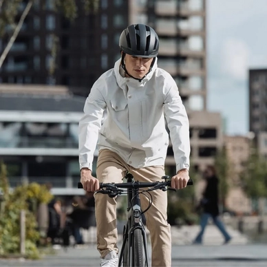 De Agu Pocket Jacket Urban Outdoor combineert stijl, functionaliteit en duurzaamheid tot een jas die ideaal wanneer het weer regenachtig is. Deze jas is gemaakt van gerecyclede en onbewerkte stoffen waardoor hij 30% minder belastend is voor het milieu. Onder de buitenstof zit een Poray 5.000 membraan die de jas winddicht, waterdicht en ademend maakt voor een optimale bescherming. Dit wordt ondersteund door getapete naden, een capuchon met vizier en een stormflap met drukknopen over de YKK-rits aan de voorzijde voor extra bescherming. De jas is daarnaast extra zichtbaar in het donker door reflecterende details en heeft een lusje aan de achterkant voor het bevestigen van een lichtje. De jas heeft tot slot vele zakken waardoor u uw spulletjes overal droog mee kunt nemen.