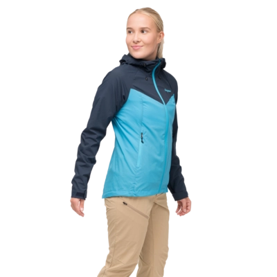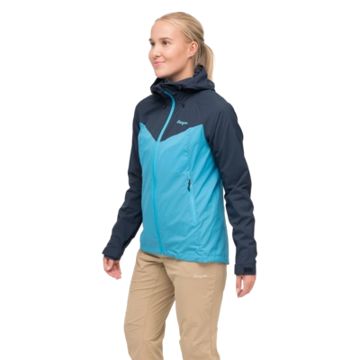 De Jas Bergans Women Rabot Windbreaker Jacket in Aqua Lagoon/Navy Blue is een stijlvolle en functionele keuze voor de avontuurlijke vrouw. Gemaakt van 100% gerecycled polyamide, biedt deze jas uitstekende windbestendigheid en waterafstotendheid, zonder afbreuk te doen aan ademend vermogen. De vaste capuchon met eenhandige koordverstelling zorgt voor extra bescherming, terwijl de mesh-voorzakken en klittenbandmanchetverstelling optimale ventilatie en pasvorm bieden. Dankzij het gearticuleerde ellebooggedeelte en het ontbreken van schouder- en zijnaden worden bewegingsvrijheid en comfort gegarandeerd. Perfect voor meerdaagse wandelingen in uitdagende omstandigheden, combineert deze jas de hoogwaardige kwaliteit van Bergans met een modieuze uitstraling.