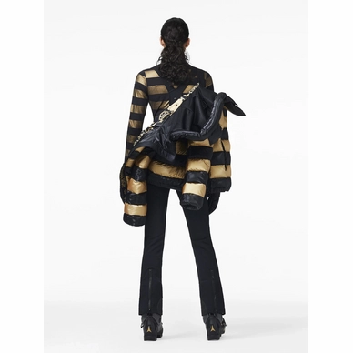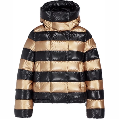 Deze modieuze, premium jas is afkomstig van de Dazzle serie van het merk Goldbergh. De jas is gemaakt van een mix van 58% polyester en 42% gerecycled polyester wat volledig waterdicht is met een waterkolom van 10.000 mm. De jas is gevoerd met polyester wat voor de helft gerecycled is en is voorzien van anti odour wat vervelende geurtjes voorkomt. De vulling is van 90/10 eendendons met 90% dons en 10% veren wat ervoor zorgt dat de jas u ook bij koudere temperaturen warm houdt. Daarnaast is de jas voorzien van een warme, vaste capuchon en een afneembare sneeuwvanger, waardoor er geen sneeuw in uw jas terechtkomt. Verder heeft de jas drie zakken, twee binnenzakken en een mouwzakje voor een skipas. Bovendien heeft de jas twee ritsen in de zijnaden en gebreide manchetten aan de binnenkant van de mouwen, zodat deze niet teruglopen. De Dazzle jas heeft een opvallende, stijlvolle uitstraling door het strepenpatroon en is een ideale toevoeging aan iedere winterse outfit!