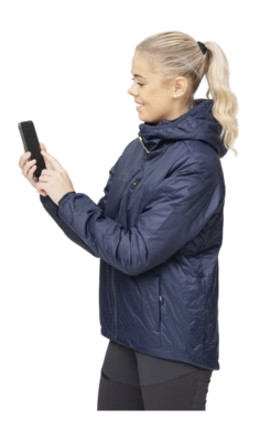 Bij het innovatieve merk Heat Experience staat warmte en comfort centraal. Deze stijlvolle navy blauwe jas combineert functionaliteit met een strak design, perfect voor zowel avonturen in de backcountry als stedelijke omgevingen. De jas is vervaardigd uit 100% nylon en voorzien van een DWR-coating, waardoor hij waterafstotend is. Dankzij de 60 gram 3M Thinsulate-isolatie en het app-gestuurde verwarmingssysteem blijft de kerntemperatuur stabiel, zelfs tijdens de koudste dagen. De meegeleverde powerbank zorgt voor langdurige warmte. Ideaal als midlayer of buitenste laag, deze jas biedt de perfecte balans tussen stijl en functie voor de moderne vrouw.