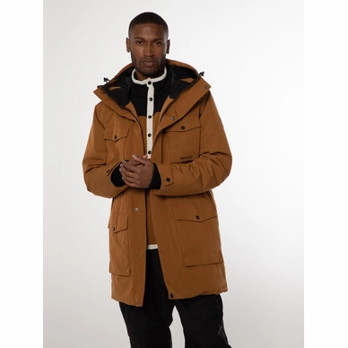 Deze lange outdoorjas uit de serie Meltin van het merk Protest beschermt u tegen weer en wind. De jas is geïnspireerd op de zakken van workwear en bevat dan ook vele buitenzakken met een drukknop, maar ook handige binnen steekzakken. Binnenin zit een handige zak voor de skibril. De jas is ademend en houdt water en wind tegen, terwijl transpiratievocht wordt afgevoerd. De naden zijn getapet. De jas verstelbaar voor de juiste pasvorm. Via een koord aan de binnenkant kunt u de taille aantrekken en ook de capuchon beschikt over verschillende trekkoorden. De jas sluit met een 2-way rits. Hij is gemaakt van 100% polyester en is PFC-vrij.