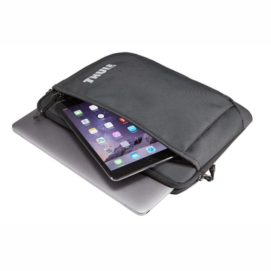 Deze veelzijdige en handige laptophoes van Thule is de Subterra en deze hoes is ideaal om uw 12 inch MacBook® in mee te nemen. Deze zal worden beschermd door het sterke nylon dat ook waterbestendig is, zo zal u ook geen last hebben van vocht bij uw elektronica. De hoeken van deze sleeve zijn versterkt met schuimrubber zodat uw laptop nog beter beschermd zal zijn. Om te voorkomen dat er krassen op uw laptop zullen ontstaan door het pakken en opbergen van uw laptop is de binnenzijde bekleed met enorm zacht vilt. Het handige voorvak van deze hoes is speciaal ontworpen om veilig een iPad® mini in mee te kunnen nemen. dit voorvak is ook ideaal om andere accessoires mee te nemen, zoals een externe muis.