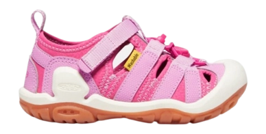 De Kids Knotch Creek Magenta Lilac Chiffon Sandaal is van het merk Keen. Deze sandaal is gemaakt van nylon en heeft een rubberen buitenzool met een EVA-voetbed voor demping. Daardoor is deze sandaal van hoge kwaliteit en is de sandaal erg comfortabel. Daarnaast is de sandaal prachtig afgewerkt en kan uw kind deze sandaal overal bij dragen. Verder is de sandaal snel droog, waardoor uw kind hem veel kan gebruiken. De sandaal beschikt over een teenbumper, die de kindervoeten beschermt en is dus ideaal voor kinderen die graag buiten spelen. Ook is deze sandaal geschikt voor water en gemakkelijk schoon te krijgen, u kunt deze sandaal namelijk wassen in de wasmachine. Deze sandaal is geschikt voor kinderen.