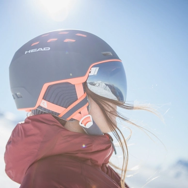 De Rachel van HEAD is de ideale skihelm voor dames. De skihelm heeft een In-mold constructie, hierdoor heeft de helm een schokabsorberende EPS laag aan de binnenkant en een harde polycarbonate laag aan de buitenkant om u optimaal te beschermen. De Rachel is voorzien van dubbele lens vizier. Zo bent u niet alleen optimaal beschermd tegen valpartijen maar ook tegen UV straling. De lens is eenvoudig los te koppelen en daarmee ook eenvoudig te verwisselen. Daarnaast biedt het u de mogelijkheid om uw eigen bril of zonnebril op te houden. De helm is volledig waterdicht en winddicht, ideaal tijdens de wat minder mooie dagen op de piste. De helm is voorzien van het BOA fit systeem, hiermee zorgt u voor een perfecte pasvorm dankzij het draaiwiel op de achterkant van de helm. De Rachel heeft een zachte voering die comfortabel aan voelt. De neckgaiter zorgt er voor dat uw nek ook heerlijk warm blijft. De helm is daarnaast voorzien van fijne en warme oorbeschermers en geeft u voldoende ventilatiemogelijkheden dankzij de vaste ventilatie gaten. Met deze complete skihelm gaat u met een gerust hart de piste af in iedere weersomstandigheid!