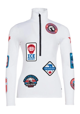 De skipully van Goldbergh Women Bodycheck White is een must-have voor de modebewuste vrouw die op zoek is naar glamour op de piste. Deze skipully van het gerenommeerde Nederlandse sportmerk Goldbergh combineert een luxueus design met hoogwaardige materialen. De slim fit pasvorm en stretchstof zorgen voor een perfecte aansluiting op het lichaam, terwijl de zachte, geborstelde rug warmte en comfort biedt. De nauwsluitende kraag en halve ritssluiting met wat langere lengte geven een trendy touch aan deze skipully. Met de volledig bedrukte insignes en het metalen merklabel straalt men stijl en klasse uit op de piste.
