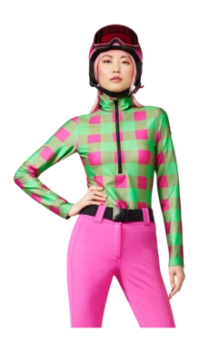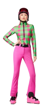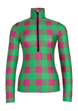 De skipully Goldbergh Women Woody in het groen en roze is een must-have voor dames die op zoek zijn naar een stijlvolle outfit tijdens de wintersport. Deze hoogwaardige skipully van het gerenommeerde Nederlandse sportmerk Goldbergh is gemaakt van een comfortabele mix van polyester en elastaan. De slim fit pasvorm zorgt voor een flatterend silhouet, terwijl de powerstretch interlock stof zorgt voor optimale bewegingsvrijheid. Het ruitjespatroon en de nauwsluitende kraag geven deze skipully een chique uitstraling. Met de halve ritssluiting, met een wat langere lengte, is deze pully zowel stijlvol als functioneel. Kortom, deze skipully van Goldbergh is de perfecte keuze voor vrouwen die glamour willen uitstralen op de piste.