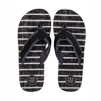 De Jaxson slippers van sportmerk Protest zijn geschikt voor warmere dagen. De slipper heeft een met katoen bekleed voetbed en is voorzien van een zwart-witte getextureerde streep. De slipper heeft een rubberen buitenzool en deze geeft u extra grip op diverse ondergronden. De EVA zool biedt een goede demping, zodat u de hele dag kunt lopen op deze mooie slipper van Protest. Kortom, een geweldige slipper voor een dag op het strand.