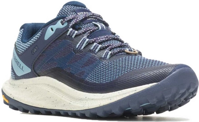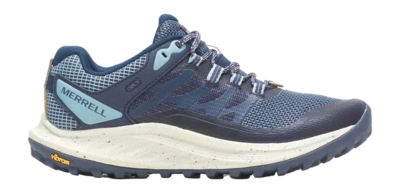 De Merrell Antora 3 trailrunningschoen in de kleur Frost Blue is ontworpen voor de serieuze hardloper die op zoek is naar comfort, bescherming en grip op uitdagend terrein. Deze lage schoen is gemaakt van ademend mesh en TPU, wat zorgt voor een uitstekende ventilatie en duurzaamheid. De 100% gerecyclede ademende mesh voering en voetbedbedekking dragen bij aan een fris gevoel, terwijl het voetbed van 50% gerecycled EVA-schuim extra demping en ondersteuning biedt tijdens uw runs. De Vibram TV5+ zool levert uitzonderlijke grip op verschillende ondergronden, waardoor u met vertrouwen kunt rennen, zelfs op technische paden. De Cleansport NXT behandeling houdt nare geurtjes onder controle en zorgt voor een aangename geur gedurende de dag. Voor extra bescherming heeft de Antora 3 een rotsplaat die uw voeten beschermt tegen scherpe objecten en een externe strop aan de achterkant die de hiel veilig en stevig vergrendelt. De schoen is uitgerust met dempende pods in de voorvoet en hiel, en een Super Rebound Compound tussenzool die uitstekende schokabsorptie biedt en de impact op uw voeten vermindert. De gevoerde kraag verhoogt het comfort, terwijl de 100% gerecyclede veters en banden bijdragen aan een duurzame keuze. Deze trailrunningschoen is ideaal voor dames die op zoek zijn naar een betrouwbare en comfortabele schoen voor hun avontuurlijke hardloopsessies.