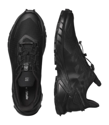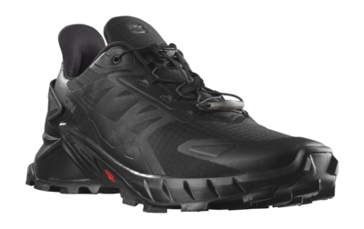 De Salomon Men Supercross 4 Black Black Black is een trailrunning schoen van hoogwaardige kwaliteit. Deze veelzijdige schoen uit de Supercross 4 serie van het gerenommeerde merk Salomon is geschikt voor modderig en zacht terrein. De synthetische en textiele upper, 100% textiele voering en binnenzool, en 100% rubberen buitenzool zorgen voor extreme duurzaamheid en comfort. De Mud Contagrip buitenzool biedt grip op droge, natte, harde of losse oppervlakken, terwijl de Chevron Lugs buitenzolen zorgen voor grip in elke richting. Het Quicklace systeem en SensiFit zorgen voor een perfecte aansluiting op de voet. Met een drop van 11 mm en stack hoogte van 32 mm (hiel) en 21 mm (voorvoet), is deze schoen geschikt voor heren.