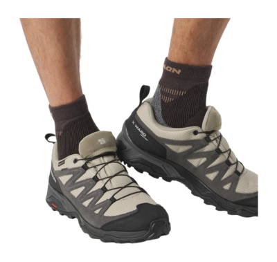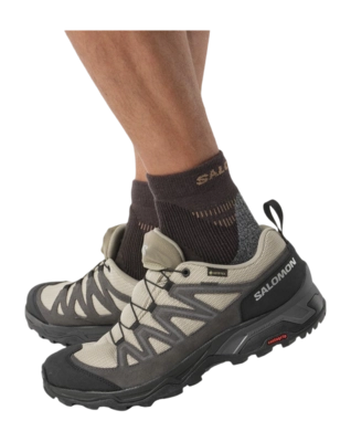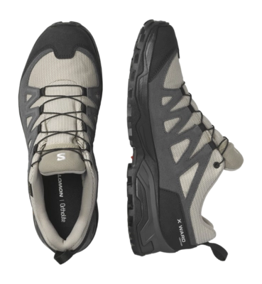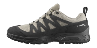 De Salomon X Ward Leather GTX is een hoogwaardige wandelschoen van het merk Salomon. De schoen heeft een upper van leer en textiel. De voering en binnenzool zijn gemaakt van 100% textiel en de buitenzool is vervaardigd uit 100% rubber. De schoen heeft een drop van 11 mm en een stack hoogte van 19 mm bij de hiel en 8 mm bij de voorvoet. Met een gewicht van 345 g en een standaard breedte is de schoen geschikt voor gemiddelde trails. De zachte en ademende voering biedt extreem comfort, terwijl het GORE-TEX membraan de schoen waterdicht en ademend maakt. Het bovenwerk is voorzien van een speciale waterafstotende behandeling en de Mud Contagrip buitenzool biedt duurzaamheid en grip op droge, natte, harde of losse oppervlakken. Het Advanced Chassis is een gevormd inzetstuk in de buitenzool dat zorgt voor ondersteuning en flexibiliteit, terwijl SensiFit zorgt voor een perfecte aansluiting op de voet. De schoen heeft Chevron Lugs buitenzolen voor grip in elke richting en een EnergyCell tussenzool van hoogwaardig EVA-schuim voor een uitstekende schokdemping. Het Suede leer zorgt voor een langere levensduur en de OrthoLite sockliner biedt demping, ademend vermogen en duurzaamheid. Het Quicklace systeem maakt het makkelijk om de schoen vast te maken. Deze wandelschoen is geschikt voor heren die op zoek zijn naar een comfortabele en duurzame schoen voor gemiddelde trails.